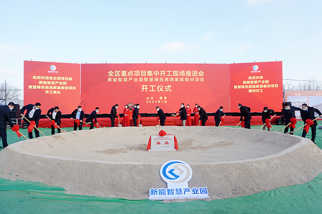 開局就是決戰(zhàn),起步就是沖刺。1月16日上午,煙臺市舉行2022年重點(diǎn)項(xiàng)目集中開工活動,在蓬萊區(qū)分會場,新能智慧產(chǎn)業(yè)園智慧綠色高端家具板材一期項(xiàng)目奠基開工。蓬萊區(qū)委書記林鈺濤、區(qū)長王長港及區(qū)委區(qū)政府其他領(lǐng)導(dǎo)班子成員出席活動慶典,煙臺財(cái)金集團(tuán)總經(jīng)理李輝、煙臺新能智慧產(chǎn)業(yè)園董事長吳軍紀(jì)、總經(jīng)理高春光及產(chǎn)業(yè)園全體員工共同參加慶典并見證項(xiàng)目奠基開工。